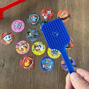 Contém: São 4 raquetes coloridas com ventosas para ?capturar? as figuras, e 96 cartas (48 redondas e 48 quadradas).