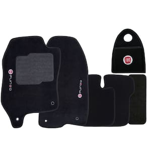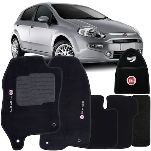 Jogo Tapete Automotivo Carpete + Lixeira Fiat Punto 2012 à 2018 Soft Logo Bordado Preto 6 Peças
