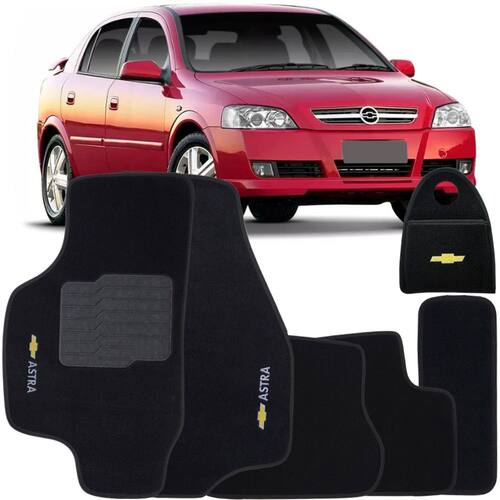 Jogo Tapete Automotivo Carpete + Lixeira Gm Astra 1999 à 2012 Soft Logo Bordado Preto 6 Peças