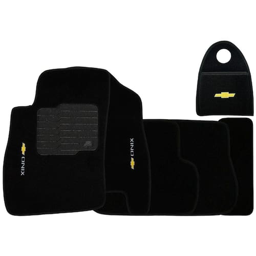 Jogo Tapete Automotivo Carpete + Lixeira Onix 2012 à 2017 Soft Logo Bordado Preto 6 Peças