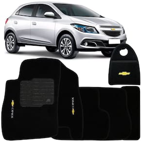 Jogo Tapete Automotivo Carpete + Lixeira Onix 2012 à 2017 Soft Logo Bordado Preto 6 Peças