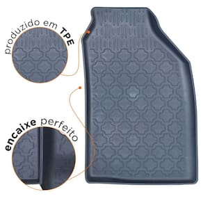 - Textura alto-relevo e antiderrapante - Fixação por encaixe - Recorte e fixação conforme o desenho do assoalho do carro - Borda protegendo contra líquidos - Material leve, dobrável e sem cheiro - Proteção contra líquidos e sujeira - Design exclusivo de alto padrão - Produto lavável