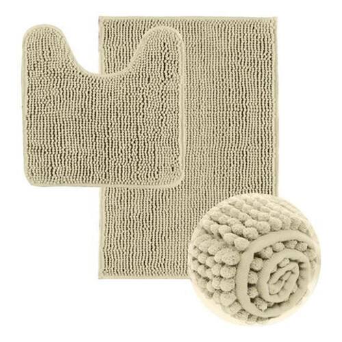 Jogo Tapete De Banheiro Macarrão 2 Peças - Cáqui