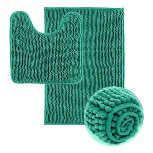 Jogo Tapete De Banheiro Macarrão 2 Peças - Verde Água