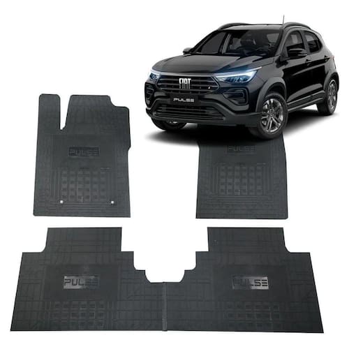 Jogo Tapete Interno Reforçado Fiat Pulse 2021 Em Diante Preto Especifico Jogo tapetes interno borracha 3 peças - super reforçado
