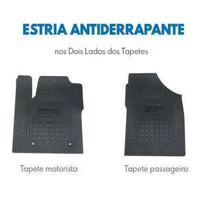 Especificação técnica: Fabricado de borracha injetado flexível Espessura de 3mm a 4mm e bordas de ate 5mm Textura antiderrapante Bordas retentoras de sujeira e mais grossa Material super resistente , não rasga e de grande durabilidade. Personalizado com o nome do carro Baixo odor Cor preta Jogo de 3 peças, sendo 2 peças dianteira e 1 uma única peça traseira Acompanha furação para travar o tapete dianteiro esquerdo motorista