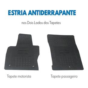 Especificação técnica: Fabricado de borracha injetado flexível Espessura de 3mm a 4mm e bordas de ate 5mm Textura antiderrapante Bordas retentoras de sujeira e mais grossa Material super resistente , não rasga e de grande durabilidade. Personalizado com o nome do carro Baixo odor Cor preta Jogo de 3 peças, sendo 2 peças dianteira e 1 uma única peça traseira Acompanha furação para travar o tapete dianteiro esquerdo motorista