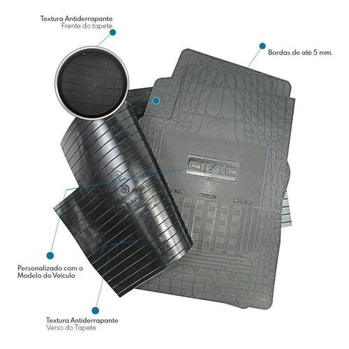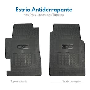 Jogo Tapete Interno Reforçado Honda Civic 2001 A 2006 Preto Especifico Tapete interno de borrachaAplicação:Montadora: hondaModelo: civicComposição do kit:- 3 tapetes de borrachaCor:Produto disponível na cor pretaEspecificação técnica: Fabricado de borracha injetado flexível Espessura de 3mm a 4mm e bordas de ate 5mm Textura antiderrapante Bordas retentoras de sujeira e mais grossa Material super resistente , não rasga e de grande durabilidade. Personalizado com o nome do carro nos tapetes dianteiros Baixo odor Cor preta Jogo de 4 peças, sendo 2 peças dianteira e 1 traseiraKit jogo de 4 tapetes emborrachados super reforçados na cor preta.Possui design estriado em alto relevo, próprio para fixação de sujeira.Suas bordas são mais grossas para evitar o fácil rasgamento da peça que é muito comum em tapetes de baixa qualidade.Não possuem odor, são antialérgicos, super resistentes e não deformam após a lavagem.Tapetes são feitos sob medida para o veículo, garantindo assim maior proteção do assoalho e sem esquecer da estética.Conteúdo : 2 tapetes dianteiros. Tapetes traseiro.Nosso horário de atendimento é de segunda a sexta das 9 as 17 horas exceto feriados .Boa compra...Atenção: as compras realizadas em nome de pessoa jurídica estão sujeitas à cobrança de icms, conforme protocolo icms 41, de 4 de abril de 2008. Caso você tenha dúvidas sobre o percentual a ser aplicado, consulte a cláusula segunda, 1 do referido protocolo.