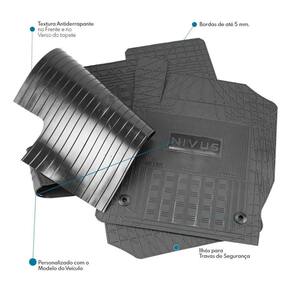 Especificação Técnica: - Fabricado de Borracha injetado Flexível - Espessura de 3mm a 4mm e bordas de ate 5mm - Textura Antiderrapante - Bordas Retentoras de Sujeira e mais grossa - Material Super Resistente , não rasga e de grande durabilidade. - personalizado com o nome do carro - baixo odor - Cor Preta - Jogo de 3 peças, sendo 2 peças Dianteira e 1 uma única peça traseira - Acompanha furação para travar o tapete dianteiro Esquerdo motorista