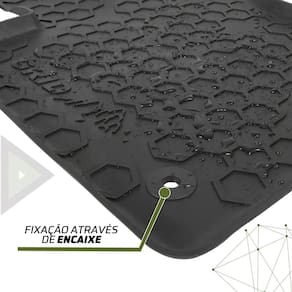 O kit completo de 5 tapetes tipo bandeja foi desenvolvido para proteger o assoalho do seu Jeep Renegade, da frente ao porta-malas. Com corte sob medida e bordas altas, estes tapetes em EVA resistente garantem máxima proteção contra água, sujeira, lama e detritos.