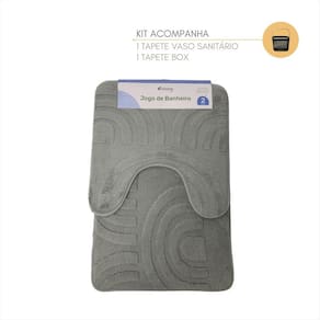 Jogo De Tapete BanheiroTransforme o seu banheiro em um ambiente mais aconchegante, sofisticado e funcional com este elegante jogo de tapetes. Com design moderno e textura em relevo, ele alia beleza e praticidade para o seu dia a dia. Com cores neutras e atemporais combina facilmente com diferentes estilos de decoração, enquanto o toque macio proporciona conforto a cada passo.Ideal para manter o piso seco e evitar escorregões, este conjunto é perfeito para quem busca praticidade sem abrir mão da estética. O tapete em formato U encaixa-se perfeitamente na base do vaso sanitário, enquanto o tapete retangular se posiciona com charme na saída do box, completando o visual do ambiente com harmonia.Seja para renovar o banheiro ou completar um novo ambiente, este jogo é a escolha ideal para quem valoriza qualidade, conforto e um acabamento impecável.Especificações Técnicas: Tapete para vaso sanitário: 39x39 cm Tapete para box: 39x59 cm Composição: Tecido 90% Poliéster 10% PVC Antiderrapante Fácil de limpar e secar Indicação de uso: -Em frente ao vaso sanitário-Saída do box ou banheira-Banheiros residenciais-Lavabos e suítes-Ambientes com piso frioKit com 2 Tapetes Imagens Ilustrativas Marca: Não Informado Ean: 7901010100823