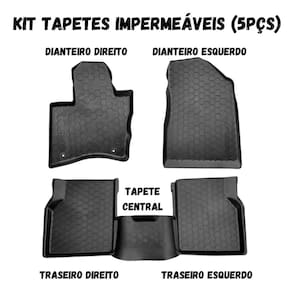 Jogo composto por: - 01 Tapete Dianteiro Lado Direito (Passageiro). - 01 Tapete Dianteiro Lado Esquerdo (Motorista). - 01 Tapete Traseiro Lado Direito - 01 Tapete Traseiro Lado Esquerdo - 01 Tapete Central do tunel Traseiro