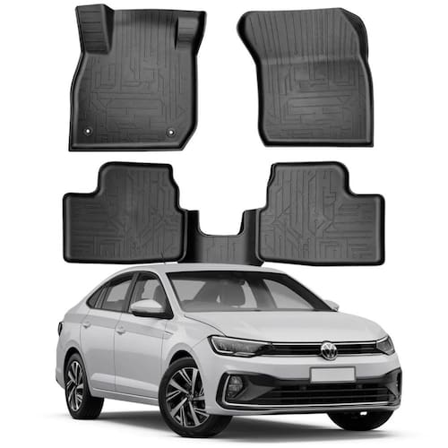 Na RV Tech Distribuidora, você encontra o kit completo de tapetes tipo bandeja para VW Virtus, fabricado sob medida e com qualidade premium. Feito em borracha de alta resistência, com espessura de 7?mm, base antiderrapante e aletas autênticos para fixação, este conjunto protege o interior do seu carro – incluindo porta-malas – contra água, lama, sujeira e desgaste diário