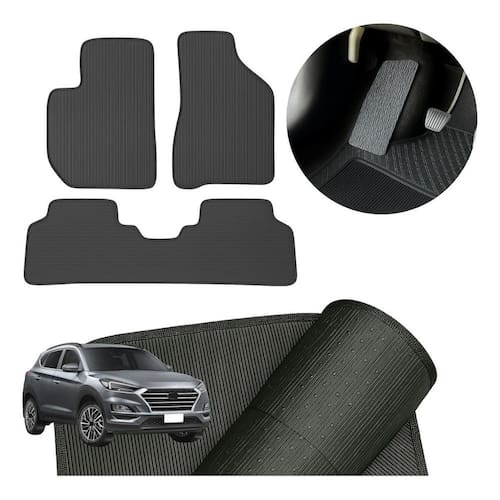 Sobre o Produto - Este jogo de tapetes em borracha para Tucson é produzido em PVC automotivo de 4mm, com base pinada antiderrapante. - Diferencial: acompanha descanso de pé separado, que pode ser posicionado conforme a necessidade.