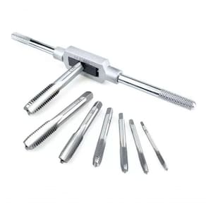 O Jogo de Tarraxas e Machos com Vira Macho é para criar e reparar roscas com precisão. Composto por 8 peças, este conjunto oferece uma variedade de machos para abrir roscas novas ou corrigir e repassar roscas danificadas em parafusos de 3 a 12 mm de diâmetro.