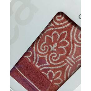 Jogo toalha banhão e rosto 2 peças taj terracota cavhome Taj A toalha taj faz referência ao taj mahal, uma das sete maravilhas do mundo moderno situado na índia, um monumento conhecido pela sua nobreza. Essa toalha possui super maciez e excelente absorção, com detalhes em seu barrado carrega consigo desenhos majestosos para que seu ambiente fique ainda mais elegante. Ela é produzida com fio 100% algodão convencional de dupla torção, proporcionando melhor absorvência e suavidade. Seu corpo e barrado possuem lindos desenhos arabescos em fio metalizado dourado. Devido seu acabamento sofisticado em jacquard, é considerado um tecido nobre em razão de sua complexidade na produção. As toalhas da cavhome são conhecidas por serem intensamente perfumadas e macias, elas possuem um acabamento de amaciante hidrófilo que além de proporcionar melhor absorção, garantem o conforto necessário após um banho relaxante, será como um abraço