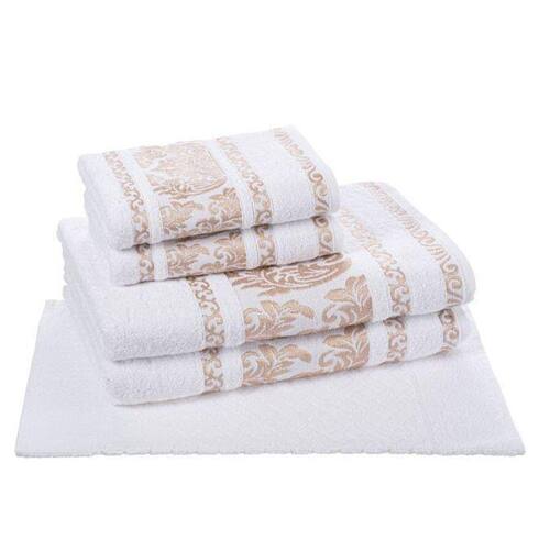 Jogo Toalha de Banho Gigante 5 Pçs Ibiza Cavhome Cor: Branco Jogo Toalha de Banho Gigante 5 Pçs Ibiza Cavhome As toalhas são produzidas com o mais puro algodão brasileiro com o objetivo de proporcionar a melhor absorção e toque. toalha de banho Ibiza tem um efeito decorativo na barra em jacquard composto de poliéster brilhante. contém:2 Toalhas de banho. Tamanho: 80cm x 1,60m2 Toalhas de rosto. Tamanho: 50cm x 80cm1 Piso Majestic. Tamanho: 50cm x 75cm Composição: 100% algodãoGramatura: 450 g/mMarca: Cavhome