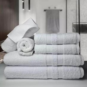 A toalha Itália Soft grande ela tem uma boa absorção de água desde o primeiro uso. Essa coleção é de tamanho Gigante, por isso são indicadas para uso no Dia a Dia, Pousada, Estética, Spa, Praia, Motel e Hotel. Feito com fio 16/1 Singelo Macio um dos melhores fios para produção de toalha de banho grande, tornando-as mais macias e com alta durabilidade nas lavagens industriais. O tingimento é reativo deixando a toalha grande com e com cores modernas e vivas, por ser reativo, não tem o risco de soltar tinta. Sua barra foi lindamente desenvolvida para dar elegância ao ambiente.Resumo Técnico do Kit Toalhas 6 Peças: Conteúdo da Embalagem: 2 Toalha de banho 2 Toalha de Rosto 2 Tapete AntiderrapanteMedida Toalha: 80cm x 150cmPeso Aproximadamente: De 490 a 510 GramasGramatura: 430 g/mMaterial: 100% Algodão Absorção: Máxima AbsorçãoToque: MacioFoto: IlustrativaFio: 16/1