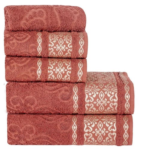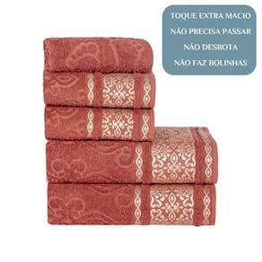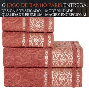 Jogo Toalhas De Banho e Rosto Paris com 5 Pçs Super Luxo Gigante Grossa Cor: TERRACOTA Jogo de Toalhas de Banho e Rosto Paris - 5 Peças Super Luxo, Gigante e Grossa