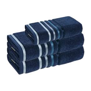 Jogo de Toalha 2 Banhão 1 Rosto Fio Penteado Lumina Unika Karsten Azul Naval
