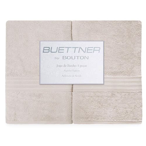 O Jogo de Toalhas Platine Algodão Egípcio são suaves, confortáveis e de ótima absorção. Por serem feitas de algodão, são hipoalérgicas, ou seja, com baixas tendências a provocar reações alérgicas. Composição:jogo de Toalhas Banho 5 peças sendo:1 Toalha de Banho 81x150cm 1 Toalha de Banho 81x150cm 1 Toalha de Rosto 50x80cm 1 Toalha de Rosto 50x80cm 1 Toalha para Pés 50x80cm Linha: Lisos - Platine Gramatura: 500g/m² Tecido: 100% Algodão exceto efeito decorativo Vantagens do produto: - Macia; - Ótima absorção; - Fios dupla torção; Instruções de uso: - Nunca utilize alvejante (cloro ou água sanitária), durante o processo de lavação; - Nunca lave a seco; - Não remover manchas com solvente; - Lave cores escuras separadamente, independentemente do produto: linha cama, linha mesa ou linha banho; - Lavar antes de usar; - Evitar guardar as peças se estiverem úmidas; - Evitar utilizar amaciante para que a absorção seja preservada; - Não utilize ferro a vapor nas peças, para que não umedeça e não ocorra mofo. Fabricante: Buettner