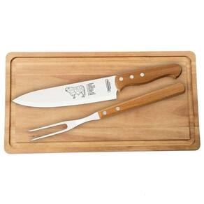 Jogo Tramontina Garfo Trinchante e Faca 8'' Churrasco Inox Cabo Madeira Natural 2 Peças.