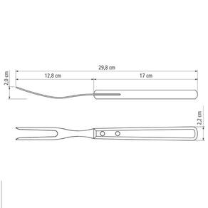 Dimensões do garfo: 29,8cm (C) x 2,2cm (L) x 2cm (A).
