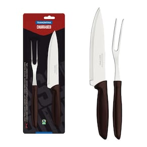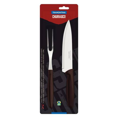 Jogo Trinchante Plenus Com Lâminas em Aço Inox e Cabos Marrom 2 Peças - Tramontina 23498410