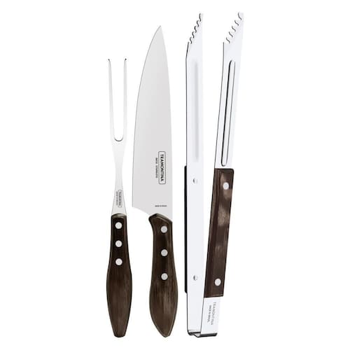 Jogo Trinchante Tramontina com Lâminas em Aço Inox e Cabos de Madeira Tratada Polywood Castanho 03 Peças