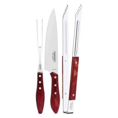 Jogo Trinchante Tramontina com Lâminas em Aço Inox e Cabos de Madeira Tratada Polywood Vermelho 03 Peças