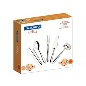 Descrição jogo de utensílios 5pç. Utility. Conteúdo: 1 concha para feijão 1 garfo trinchante 1 pá para bolo 1 colher para arroz 1 pegador para massa orientações gerais durante a lavagem, use apenas sabão ou detergente e uma esponja macia. Outros tipos de produtos, como palha de aço, poderão riscar ou prejudicar o brilho dos talheres. Enxágue bem cada peça a fim de remover totalmente os resíduos dos produtos de limpeza, pois, por serem abrasivos, podem prejudicar o inox. Sempre que possível, use água quente, pois renova o brilho do talher. Após a lavagem, enxugue imediatamente os talheres, caso contrário, as substâncias químicas da água cloro poderão causar manchas. Evite atrito entre os talheres durante o processo de lavagem e no armazenamento, para mantê-los sem riscos. Evite o contato das peças com superfícies quentes. Elas provocam a descoloração do produto. Não guarde os talheres em locais úmidos. A umidade também provoca manchas. Ao usar a lava-louça, recomendamos retirar os talheres logo que tenha terminado o ciclo ''enxaguar'', a fim de que sejam secados manualmente. Benefícios do produto 1. Totalmente feitos de aço inox, altamente duráveis, mantêm as características , preservando a beleza, a higiene e a durabilidade do material. 2. Próprios para uso diário combina com qualquer ambiente. 3. Acabamento brilho. 4. Podem ser lavados diariamente na máquina de lavar louças. Tr66906/720