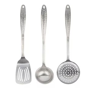 Jogo Utensilios Cozinha 3 Peças Cabo Em Aço Com Alça Nylon - Jogo de Utensílios