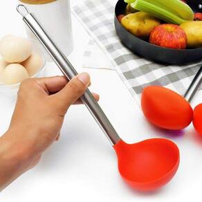 01 Colher de Servir em Silicone Cabo de Metal 34cm Vermelha