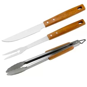 Jogo Utensílios para Churrasco 3pç Cabo Madeira Western Home