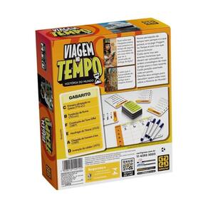 Embarque em uma incrível jornada pela linha do tempo da humanidade! No jogo Viagem no Tempo, cada carta traz seis eventos históricos e seu desafio é colocá-los na ordem cronológica correta, do mais antigo ao mais recente. A cada acerto, você soma pontos e descobre o quanto conhece sobre a História do Mundo! Chame seus amigos e veja quem é o verdadeiro viajante do tempo! Idade: a partir de 8 anos Participantes: 2 a 4 jogadores Tempo estimado de jogo: 25 minutos