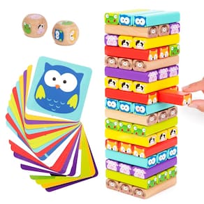 - 4 JOGOS EM 1: Desfrute de diversão sem fim com quatro modos de jogo exclusivos: Combine cores com um rolo de dados, use cartas de animais para seleção de blocos, liberte a criatividade com construções imaginativas ou monte correntes de dominó envolventes. Nossa versátil torre de madeira foi projetada para o máximo de diversão.