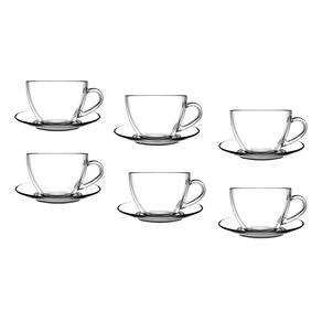 Conjunto de 06 Xícaras de Vidro com 06 Pires de vidro.