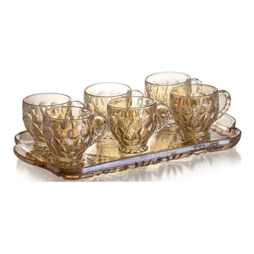 Quem aprecia um bom chá ou café gosta de servir em uma xícara que apresente elegância. Feito em vidro trabalhado, robusto, esse jogo vai chamar atenção na sua mesa posta. Ucharme para sua hora do chá Surpreenda seus convidados.
