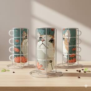 Transforme Seu Cantinho do Café com Charme e Organização! Jogo 4 Xícaras 150ml Cerâmica Empilháveis com Suporte de Metal - Gatinho Fofo Você ama café e adora um ambiente organizado e cheio de personalidade? Apresentamos o conjunto perfeito que vai além de simples xícaras: uma declaração de estilo e praticidade para sua cozinha! Por que você vai se apaixonar por este conjunto: