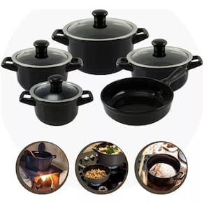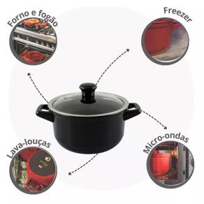 Informações: Diâmetro e capacidade das caçarolas: 14cm - 0,9L. 16cm - 1,1L. 18cm - 1,5L. 20cm - 2,5L. Diâmetro da Frigideira: 20cm. Capacidade da Frigideira: 1,2L Material: Cerâmica, Vidro, inox. Cor: Preto. Linha: Smart Duo. Fabricante: Ceraflame.