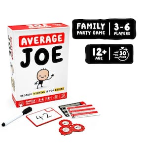 Format Games Average Joe Party Game - Abrace seu lado comum com 600 perguntas - Diversão para a família e amigos! Para maiores de 8 anos, 3 a 6 jogadores, 30 minutos de jogo, feito — DIVERSÃO INSTANTÂNEA GARANTIDA: mergulhe no jogo com regras simples e jogabilidade estratégica que fazem do Average Joe o jogo perfeito para qualquer reunião. Configure em minutos e desfrute de rodadas rápidas de 30 minutos. - RICA CAPACIDADE DE REPRODUÇÃO: com 600 perguntas envolventes criadas para desafiar seus conhecimentos e percepções diárias — nunca repita o mesmo jogo duas vezes! - CONCEITO DE JOGO ÚNICO: Esqueça de ser o melhor; você pode ser o mais comum? Average Joe vira uma típica noite de jogo de cabeça para baixo ao recompensar as respostas mais comuns. - APELO PARA TODAS AS IDADES: Ideal para jogadores com 8 anos ou mais, este jogo oferece diversão limpa e intrigante para famílias, crianças e adultos, perfeito para festas e encontros casuais. - REPLETO DE CONTEÚDO: Inclui 100 cartões de perguntas, 6 pás de respostas limpas, 6 canetas para limpar a seco, 40 fichas de pontuação, um dado e instruções fáceis de seguir, tudo garantindo uma noite de jogo emocionante.