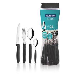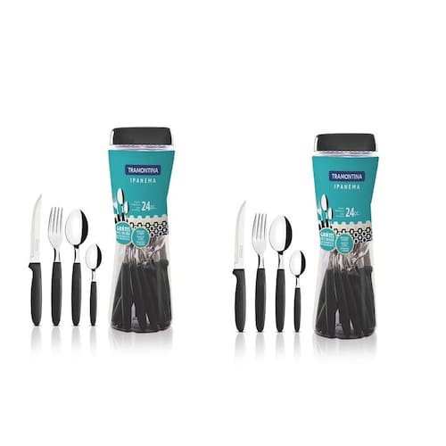 Jogos Talheres Faqueiro Tramontina Ipanema 48 Peças Preto - 23399/091 Conteúdo: 12 - Facas De Mesa/churrasco 5 12 - Garfos de mesa 12 - Colheres de mesa 12 - Colheres para chá Descrição: Os talheres da linha Ipanema são próprios para as refeições diárias. Despojados, têm nas diferentes opções de cores dos cabos de polipropileno o toque de alegria que vai à mesa. Os garfos, facas e colheres são de aço inox em espessuras que garantem alta resistência e durabilidade. O formato das lâminas impede deformações e o tratamento térmico dá vida longa ao fio. Podem ser levados à máquina de lavar. Lâminas em aço inox. Cabos de polipropileno. Pote plástico. Antes da primeira utilização, lave bem as peças e seque-as. Tenha cuidado ao manusear produtos cortantes e perfurantes e mantenha-os fora do alcance de crianças. Para maior durabilidade dos produtos, recomenda-se secar bem antes de guardar, mesmo após lavagem em máquina. Para descarte dos produtos e embalagens siga as orientações de reciclagem vigentes. EAN13: 7898673650027 DUN14: 17891112112275 NCM: 8215.20.00 Peso Líquido: 0,5350 kg. Peso Bruto: 0,6250 kg. Metragem: 0,003000 m Dimensões Embalagem Compr. X Larg. X Alt. : 100x 100x 300 mm. Dimensões Produto Compr. X Larg. X Alt. : 100x 100x 300 mm. Cor 1: 000000 Hexa