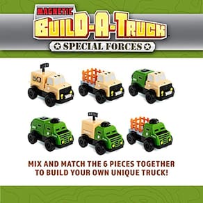 Esses caminhões atraentes e superdimensionados são projetados com os construtores mais jovens em mente. As peças coloridas são fáceis de segurar e nosso sistema de travamento magnético torna a montagem rápida. Cada veículo roda em pneus de borracha reais e tem um recurso móvel para valor agregado! Escolha entre os temas Construção, Incêndio e Resgate, Feira do Condado ou Forças Especiais. Todos os conjuntos são entre si para construir dezenas de veículos únicos!