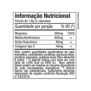 A composição única de Joint Move proporciona benefícios essenciais para a saúde das articulações. O Magnésio atua na redução de inflamações e dores musculares, além de promover relaxamento muscular. O Metilsulfonilmetano (MSM), por sua vez, é conhecido por melhorar a mobilidade articular, reduzindo a dor e rigidez. O Ácido Hialurônico auxilia na lubrificação das articulações, contribuindo para a sua função adequada e prevenindo o desgaste. O Colágeno Tipo 2 é um dos principais componentes da cartilagem, ajudando a fortalecer as articulações e a regenerar os tecidos danificados, proporcionando mais flexibilidade e elasticidade.