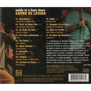 Marcado pelo ritmo das tradicionais festas do interior nordestino, onde o chão é de terra batida e o povo não faz questão de distinguir o samba do forró, o CD Samba de Latada, lançado pela ROB DIGITAL, pretende resgatar uma vertente antiga - porém pouco conhecida - da música popular brasileira. À frente do trabalho estão a voz de Josildo Sá, uma das mais famosas do forró contemporâneo, e o já renomado clarinete de Paulo Moura. no sertão de Pernambuco, de onde eu venho, chamam de 'latadas' aquelas casas em que acontecem os arrasta-pés, conhecidas também como palhoças, por causa dos telhados de palha, explica Josildo. nesses locais, o samba é tocado com sanfona e zabumba. Marca: Não Informado Ean: 7898085051139