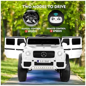 Mercedes Benz G650S oficialmente licenciado. Dois modos de operação As crianças podem operar os carros elétricos por meio de pedais e volante para aproveitar as 2 velocidades diferentes. Os pais podem controlar o carro das crianças por meio do controle remoto de 2,4 GHz, que possui três velocidades. Funções múltiplas e alegres. A porta AUX integrada, USB, slot TF, música e história, buzina tornam a jornada de condução do seu filho mais agradável. As luzes LED de alto brilho fazem com que a criança se sinta super descolada ao dirigir à noite. Segurança e conforto. A função de início lento pode reduzir o impacto da aceleração repentina nas crianças. A porta com fechadura de segurança e o assento em couro PU com cinto de segurança garantem ao máximo a segurança e o conforto da criança. Design durável e portátil. Este veículo elétrico para crianças é feito de PP não tóxico e ferro. As rodas com sistema de suspensão por mola são adequadas para todos os tipos de estradas, incluindo estradas de asfalto, estradas de tijolos e estradas de cimento. A alça de bagagem ajuda você a puxar o carro elétrico com mais eficiência para o exterior. Presente perfeito bateria 12V 7AH de grande capacidade com sobrecarga e proteção contra sobrecarga, 2 motores potentes. Tamanho 110 x 60 x . Capacidade de peso 29 kg. Recomendado para idades 37 96 meses. Velocidade 2 4,5 KM , h. As crianças JOYLDIAS Mercedes Benz O carro é um presente maravilhoso para o aniversário e o Natal dos seus filhos Marca: Não Informado
