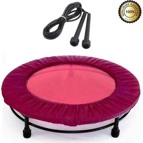 Jump rosa profissional mini cama elástica +corda +capa rosa O jump profissional - cama elástica trampolim é ideal para o uso em academias, condomínios e residências, além de queimar calorias de forma eficiente. Confeccionado em tubo redondo de aço com aro de reforço, possui pintura em epóxi e tem os pés fixos. São 32 molas para você manter o corpo em forma de uma maneira divertida e saudável. As molas são fixadas a tela por 16 suportes de aço. Pés em pvc antiderrapantes removíveis que se encaixam. Ações e benefícios: É uma forma divertida de queimar calorias, e além de ser um ótimo exercício aeróbico, também fortalece pernas e glúteos. Indicações: Ideal para o uso em academias, condomínios e residências. Indicado para . Kit composto por: - mini jump rosa - capa de jump rosa - corda de pular em pvc