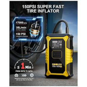 Jump Starter(Aux.de partida) com Compressor GOOLOO A3 Amarelo 3000A 150 PSI Gasolina 9.0L Diesel 6.5L 12V