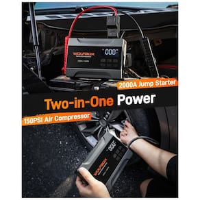 Jump Starter (Aux.de partida) com Compressor WOLFBOX 2000A Preto 37Wh 150 PSI Gasolina 5L 12V