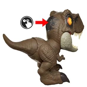 Esse dinossauro Tyrannosaurus rex estilizado traz uma maneira totalmente nova para os fãs interagirem com seu favorito selvagem do Jurassic World. Essa figura do T-Rex tem um recurso especial que permite que os fãs gravem frases que são traduzidas em fala de dinossauro Basta pressionar e segurar o botão na parte de trás da cabeça e falar para gravar. Apertando o botão, você ouvirá a gravação como fala de dinossauro Em seguida, gire a cauda dessa figura de 8 polegadas de comprimento para ver um ataque multidirecional e ouvir os rugidos dos dinossauros É um ótimo presente para fãs de dinossauros a partir de 4 anos de idade. As cores e as decorações podem variar.